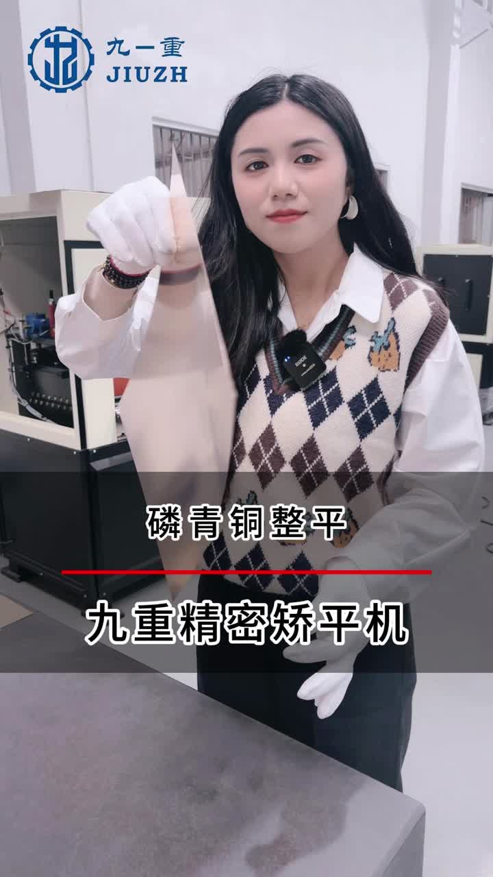В этом видео демонстрируется высокоточное выравнивание листов фосфористой бронзы — материала, широко используемого в электронике, разъемах, пружинах, проводящих компонентах и прецизионных механических деталях. Фосфористая бронза обладает превосходной эластичностью и проводимостью, но склонна к небольшому короблению или деформации под напряжением во время резки, штамповки или обработки рулонов. Технология выравнивания Jiuzh обеспечивает сверхстабильную плоскостность, не повреждая нежную поверхность.